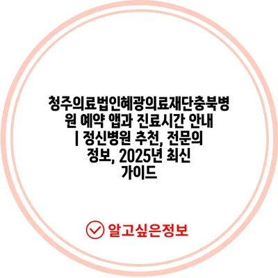 청주의료법인혜광의료재단충북병원 예약 앱과 진료시간 공지 | 정신병원 추천, 전연락 정보, 2025년 최신 설명서 에 대해 자주 묻는 질문 TOP 5