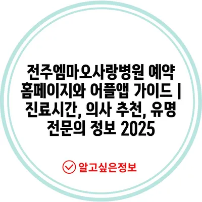 전주엠마오사랑병원 예약 홈페이지와 어플앱 설명서 | 진료시간, 의사 추천, 유명 전연락 정보 2025 에 대해 자주 묻는 질문 TOP 5