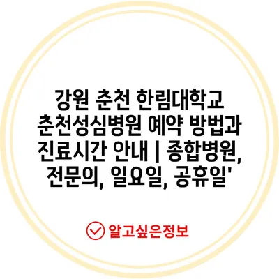 ✅ 한림대학교 춘천성심병원의 예약 방법과 진료시간을 알아보세요!