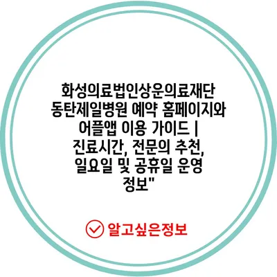 ✅ 동탄제일병원의 진료시간과 예약 방법을 한눈에 알아보세요.