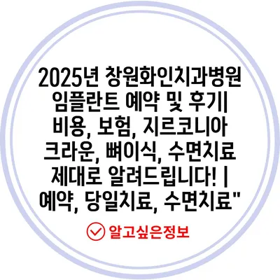 2025년 창원화인치과병원 임플란트 예약 및 후기| 비용, 보험, 지르코니아 크라운, 뼈이식, 수면치료 제대로 알려제공합니다! | 예약, 당일치료, 수면치료