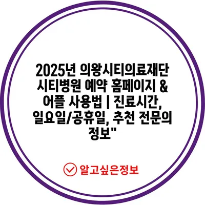 2025년 의왕시티의료재단 시티병원 예약 홈페이지 & 어플 사용법 | 진료시간, 일요일/공휴일, 추천 전연락 정보에 대해 자주 묻는 질문 TOP 5