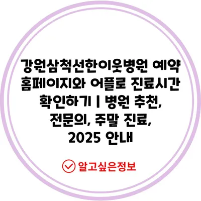 강원삼척선한이웃병원 예약 홈페이지와 어플로 진료시간 확인하기 | 병원 추천, 전연락, 주말 진료, 2025 공지 에 대해 자주 묻는 질문 TOP 5