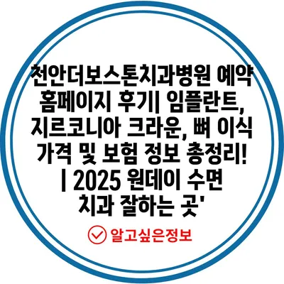 천안더보스톤치과병원 예약 홈페이지 후기| 임플란트, 지르코니아 크라운, 뼈 이식 가격 및 보험 정보 총정리! | 2025 원데이 수면 치과 잘하는 곳’