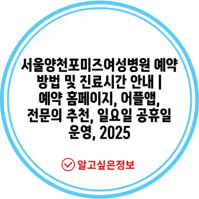 서울양천포미즈여성병원 예약 방법 및 진료시간 공지 | 예약 홈페이지, 어플앱, 전연락 추천, 일요일 공휴일 운영, 2025 에 대해 자주 묻는 질문 TOP 5