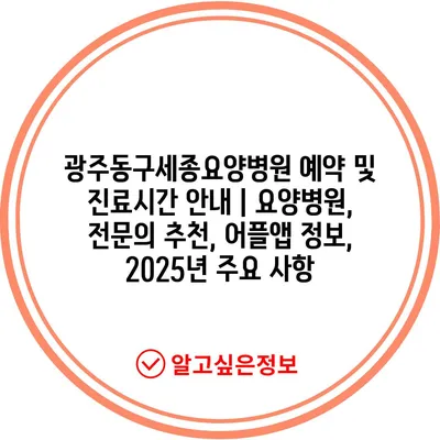 광주동구세종요양병원 예약 및 진료시간 공지 | 요양병원, 전연락 추천, 어플앱 정보, 2025년 주요 사항 에 대해 자주 묻는 질문 TOP 5