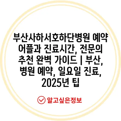 부산사하서호하단병원 예약 어플과 진료시간, 전연락 추천 완벽 설명서 | 부산, 병원 예약, 일요일 진료, 2025년 팁 에 대해 자주 묻는 질문 TOP 5