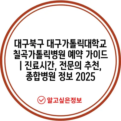 대구북구 대구가톨릭대학교 칠곡가톨릭병원 예약 설명서 | 진료시간, 전연락 추천, 종합병원 정보 2025