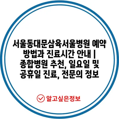 서울동대문삼육서울병원 예약 방법과 진료시간 공지 | 종합병원 추천, 일요일 및 공휴일 진료, 전연락 정보 에 대해 자주 묻는 질문 TOP 5