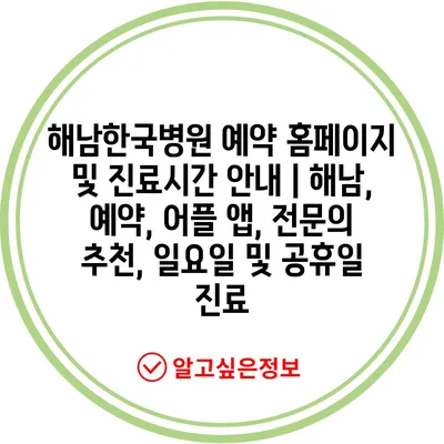✅ 해남한국병원의 진료시간과 예약 방법을 지금 확인해 보세요.