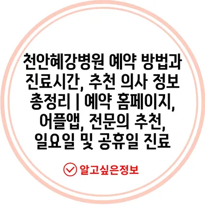 천안혜강병원 예약 방법과 진료시간, 추천 의사 정보 총정리 | 예약 홈페이지, 어플앱, 전연락 추천, 일요일 및 공휴일 진료에 대해 자주 묻는 질문 TOP 5