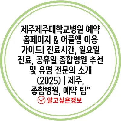 ✅ 제주제주대학교병원의 진료시간과 편리한 예약 방법을 알아보세요.