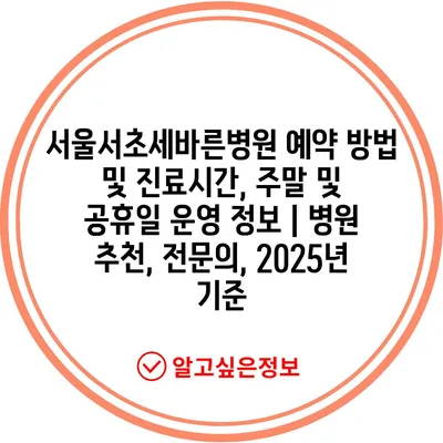 서울서초세바른병원 예약 방법 및 진료시간, 주말 및 공휴일 운영 정보 | 병원 추천, 전연락, 2025년 기준 에 대해 자주 묻는 질문 TOP 5