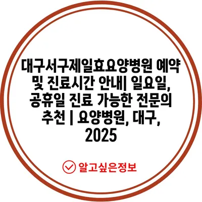 ✅ 대구서구제일효요양병원의 진료시간과 예약 방법을 알아보세요.
