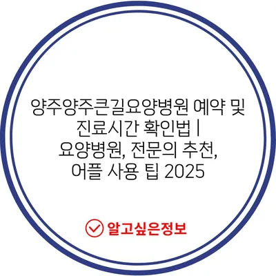 양주양주큰길요양병원 예약 및 진료시간 확인법 | 요양병원, 전연락 추천, 어플 사용 팁 2025 에 대해 자주 묻는 질문 TOP 5