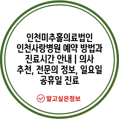 ✅ 인천사랑병원 예약 방법과 진료 시간을 자세히 알아보세요.