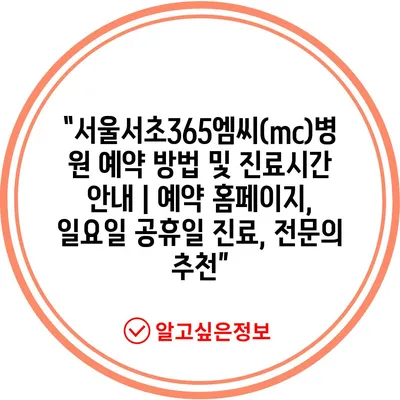 ✅ 서울서초365엠씨병원 예약을 쉽게 하는 방법을 알아보세요.