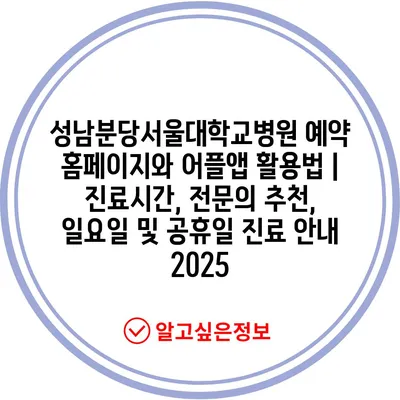 성남분당서울대학교병원 예약 홈페이지와 어플앱 활용법 | 진료시간, 전연락 추천, 일요일 및 공휴일 진료 공지 2025 에 대해 자주 묻는 질문 TOP 5