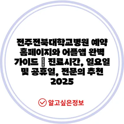 전주전북대학교병원 예약 홈페이지와 어플앱 완벽 가이드 | 진료시간, 일요일 및 공휴일, 전문의 추천 2025