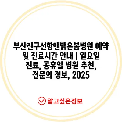 부산진구선함앤밝은봄병원 예약 및 진료시간 공지 | 일요일 진료, 공휴일 병원 추천, 전연락 정보, 2025 에 대해 자주 묻는 질문 TOP 5