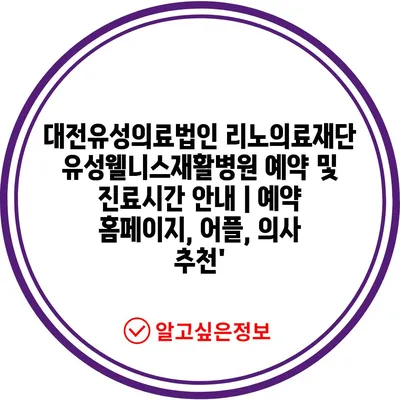 ✅ 유성웰니스재활병원의 예약 방법과 진료시간을 자세히 알아보세요.