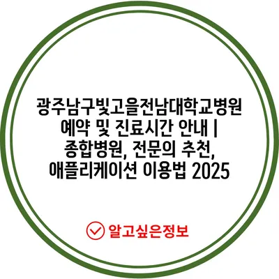광주남구빛고을전남대학교병원 예약 및 진료시간 공지 | 종합병원, 전연락 추천, 애플리케이션 이용법 2025