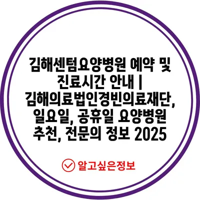 ✅ 김해센텀요양병원의 진료시간과 예약 방법을 알아보세요.