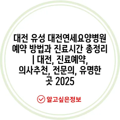 대전 유성 대전연세요양병원 예약 방법과 진료시간 총정리 | 대전, 진료예약, 의사추천, 전연락, 유명한 곳 2025 에 대해 자주 묻는 질문 TOP 5
