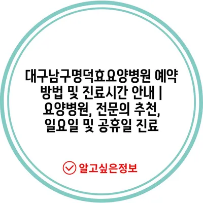 대구남구명덕효요양병원 예약 방법 및 진료시간 안내 | 요양병원, 전문의 추천, 일요일 및 공휴일 진료