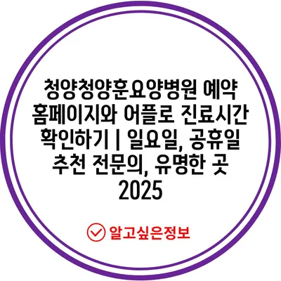청양청양훈요양병원 예약 홈페이지와 어플로 진료시간 확인하기 | 일요일, 공휴일 추천 전연락, 유명한 곳 2025