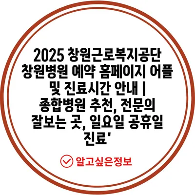 2025 창원근로복지공단 창원병원 예약 홈페이지 어플 및 진료시간 공지 | 종합병원 추천, 전연락 잘보는 곳, 일요일 공휴일 진료’ 에 대해 자주 묻는 질문 TOP 5