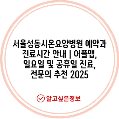 서울성동시온요양병원 예약과 진료시간 공지 | 어플앱, 일요일 및 공휴일 진료, 전연락 추천 2025 에 대해 자주 묻는 질문 TOP 5
