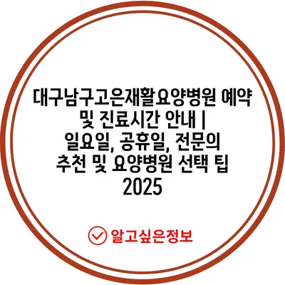 대구남구고은재활요양병원 예약 및 진료시간 공지 | 일요일, 공휴일, 전연락 추천 및 요양병원 선택 팁 2025 에 대해 자주 묻는 질문 TOP 5