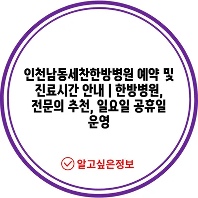 ✅ 인천남동세찬한방병원의 예약 방법을 자세히 알아보세요.