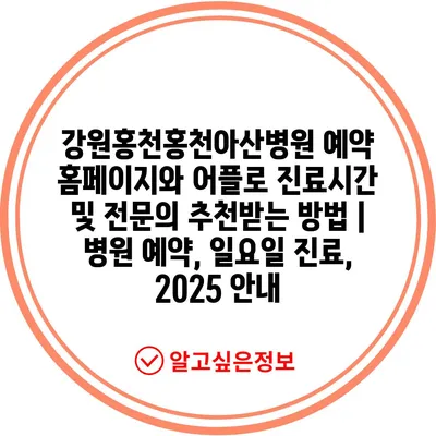 강원홍천홍천아산병원 예약 홈페이지와 어플로 진료시간 및 전연락 추천받는 방법 | 병원 예약, 일요일 진료, 2025 공지 에 대해 자주 묻는 질문 TOP 5