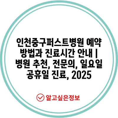 인천중구퍼스트병원 예약 방법과 진료시간 공지 | 병원 추천, 전연락, 일요일 공휴일 진료, 2025 에 대해 자주 묻는 질문 TOP 5