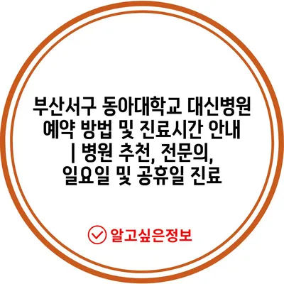 부산서구 동아대학교 대신병원 예약 방법 및 진료시간 공지 | 병원 추천, 전연락, 일요일 및 공휴일 진료 에 대해 자주 묻는 질문 TOP 5