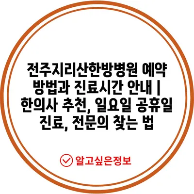 전주지리산한방병원 예약 방법과 진료시간 안내 | 한의사 추천, 일요일 공휴일 진료, 전문의 찾는 법