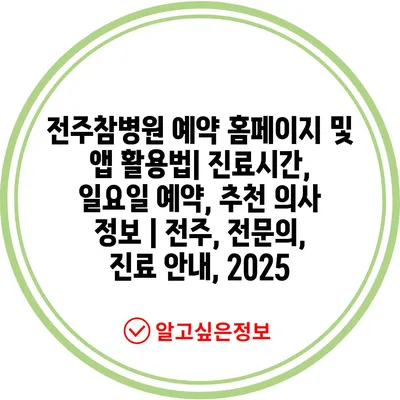 전주참병원 예약 홈페이지 및 앱 활용법| 진료시간, 일요일 예약, 추천 의사 정보 | 전주, 전연락, 진료 공지, 2025 에 대해 자주 묻는 질문 TOP 5