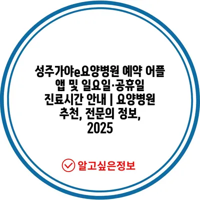 성주가야e요양병원 예약 어플 앱 및 일요일·공휴일 진료시간 안내 | 요양병원 추천, 전문의 정보, 2025