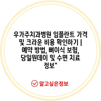 우가주치과병원 임플란트 가격 및 크라운 비용 확인하기 | 예약 방법, 뼈이식 보험, 당일원데이 및 수면 치료 정보”