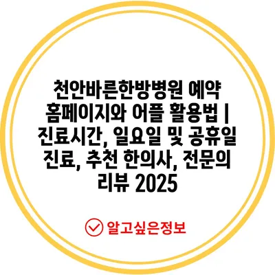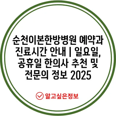 순천이본한방병원 예약과 진료시간 안내 | 일요일, 공휴일 한의사 추천 및 전문의 정보 2025