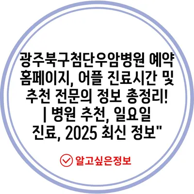 광주북구첨단우암병원 예약 홈페이지, 어플 진료시간 및 추천 전문의 정보 총정리! | 병원 추천, 일요일 진료, 2025 최신 정보”