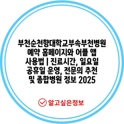 부천순천향대학교부속부천병원 예약 홈페이지와 어플 앱 사용법 | 진료시간, 일요일 공휴일 운영, 전문의 추천 및 종합병원 정보 2025