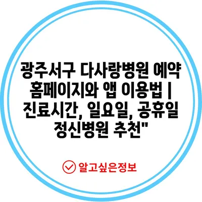 광주서구 다사랑병원 예약 홈페이지와 앱 이용법 | 진료시간, 일요일, 공휴일 정신병원 추천”