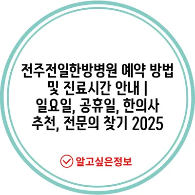 전주전일한방병원 예약 방법 및 진료시간 안내 | 일요일, 공휴일, 한의사 추천, 전문의 찾기 2025