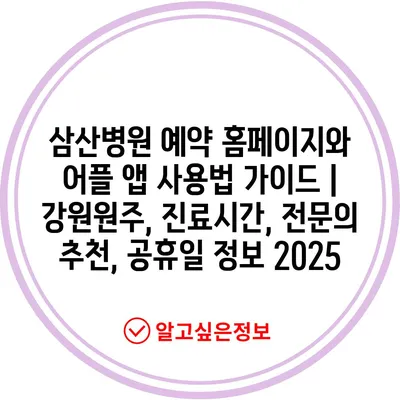 삼산병원 예약 홈페이지와 어플 앱 사용법 가이드 | 강원원주, 진료시간, 전문의 추천, 공휴일 정보 2025