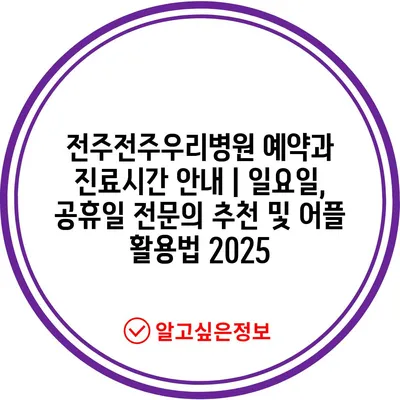 전주전주우리병원 예약과 진료시간 안내 | 일요일, 공휴일 전문의 추천 및 어플 활용법 2025