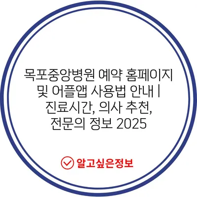 목포중앙병원 예약 홈페이지 및 어플앱 사용법 안내 | 진료시간, 의사 추천, 전문의 정보 2025