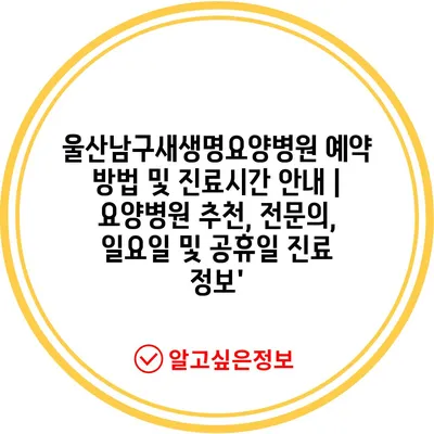울산남구새생명요양병원 예약 방법 및 진료시간 안내 | 요양병원 추천, 전문의, 일요일 및 공휴일 진료 정보’